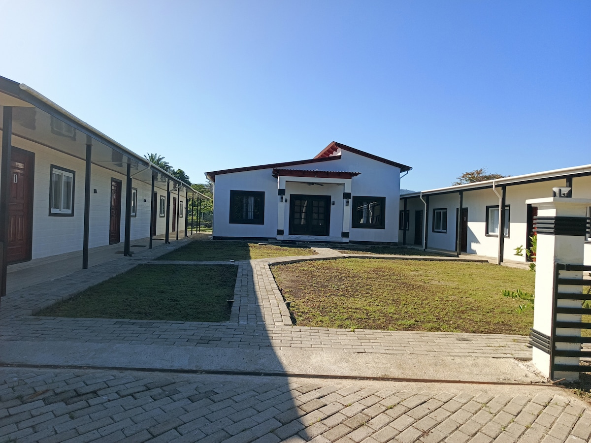 Disfruta de la sencillez del alojamiento tranquilo, cálido y céntrico en la ciudad de La Ceiba. Es un apartamento de una habitación, completamente amueblado, climatizado, cuenta un sofá/ cama, cama Queen, un baño amplio, cocineta equipada, televisor, salita/comedor y balcón con hermosa vista de Pico Bonito y estacionamiento techado, ubicado en la Col. Piñansa, a 5 minutos del centro de la ciudad en vehículo, cerca de Transporte Cristina, Paseo de los Ceibeños, Dirección Marina Mercante, etc.