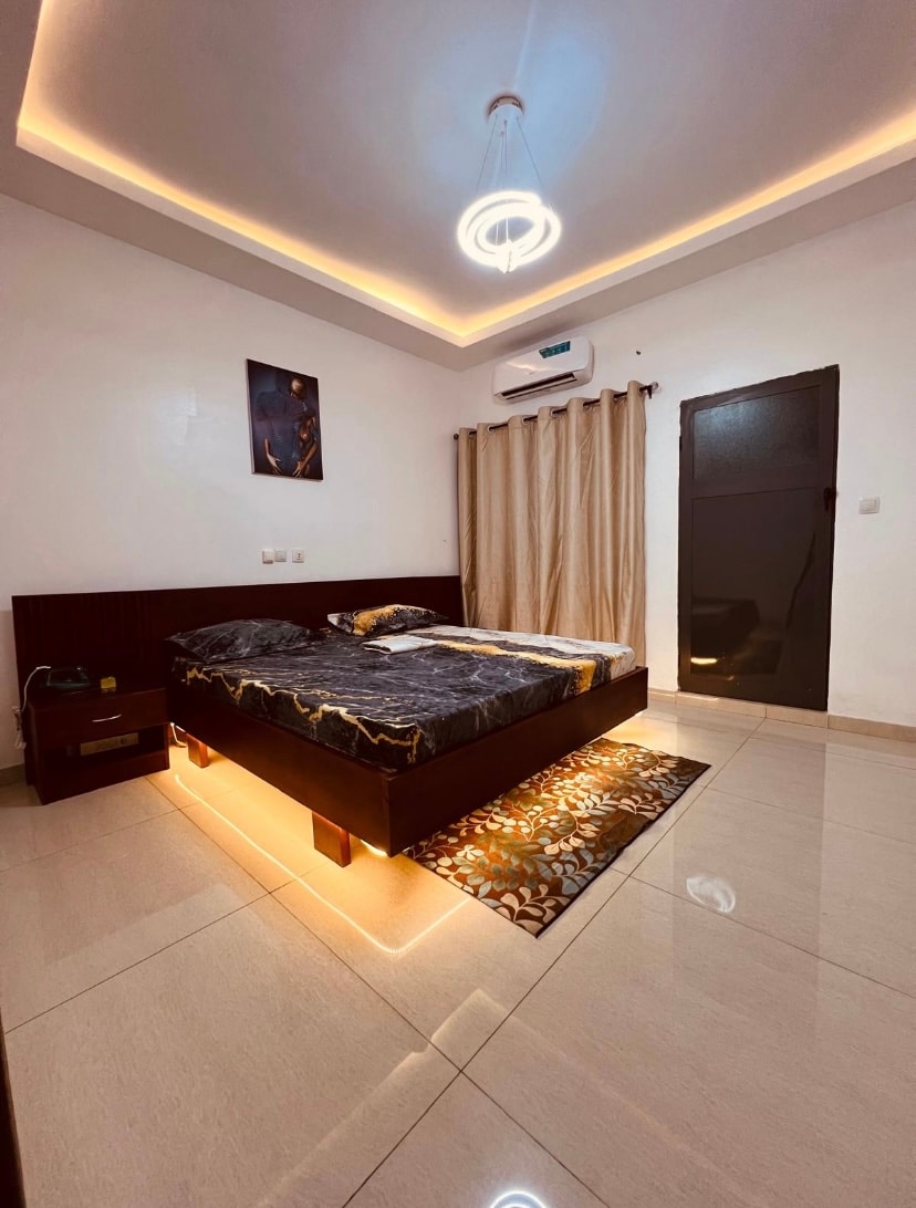Appartement d’une chambre , avec salle de bain attenante et eau chaude , salon, cuisine , entrée privee avec garage, meublé tout confort à Akokbagto, à deux pas de la Route des Pêches et l’Ocean Atlantique Idéal pour un(e) professionnel(le) en mission ou un couple en quête de tranquillité, ce appartement moderne et entièrement équipé se trouve à 10mn de l’aeroport de Cotonou. Électricité à la charge de l’invité.