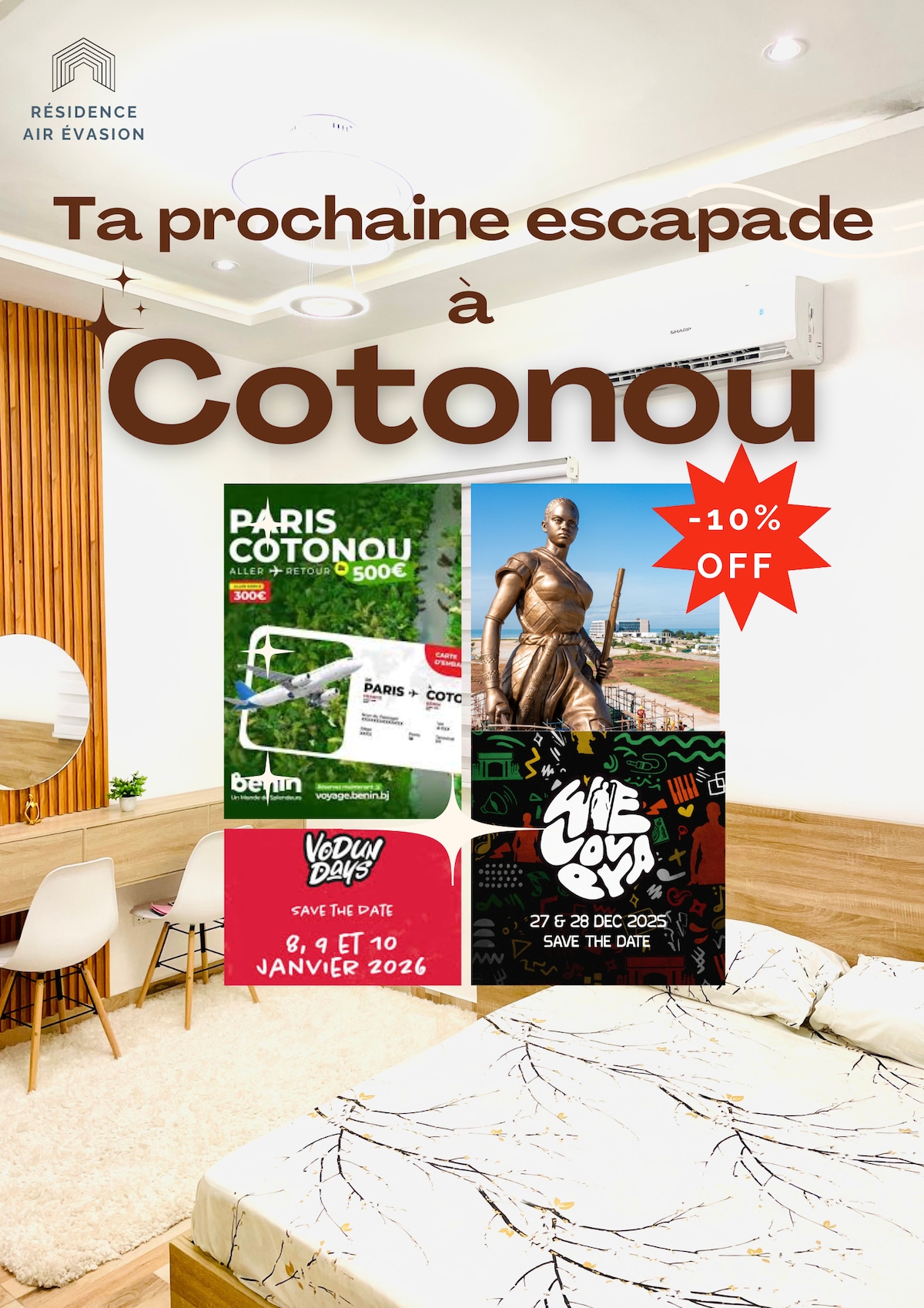 Je vous propose un appartement climatisé mitoyen type F3 dans un quartier paisible (Fidjrossè akogbato) de Cotonou situé à 12 min de l'aéroport et 20 min à pied de la plage. Il y a de l’eau chaude dans les salles d’eau et la cuisine est équipée de réfrigérateur, micro-ondes, cuisinière Prise en charge dès l'Aéroport à l'aller comme au retour. Pour vos déplacements en ville, vous disposez en option d'un véhicule avec chauffeur. Je parle le français, l'allemand et je me débrouille en anglai