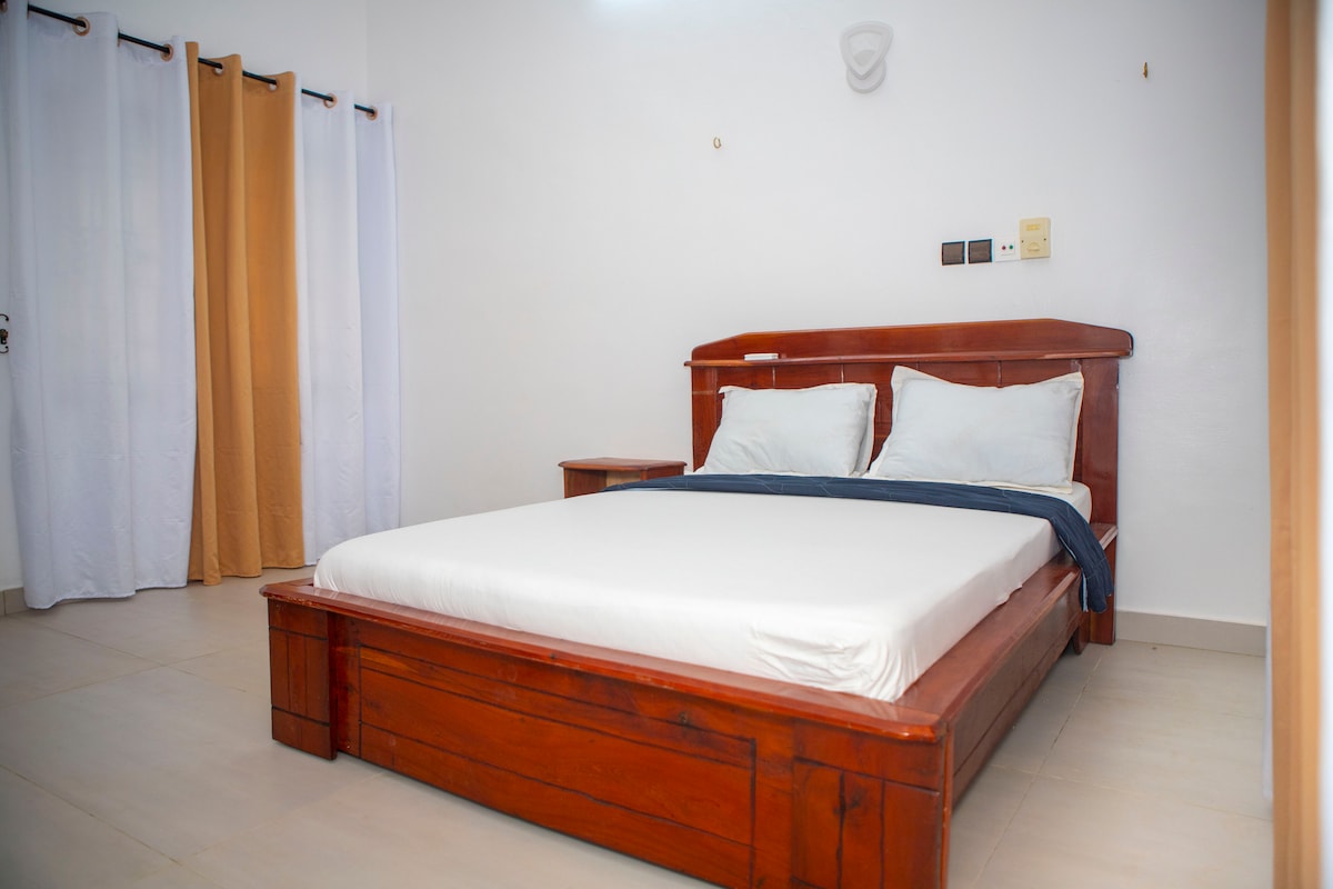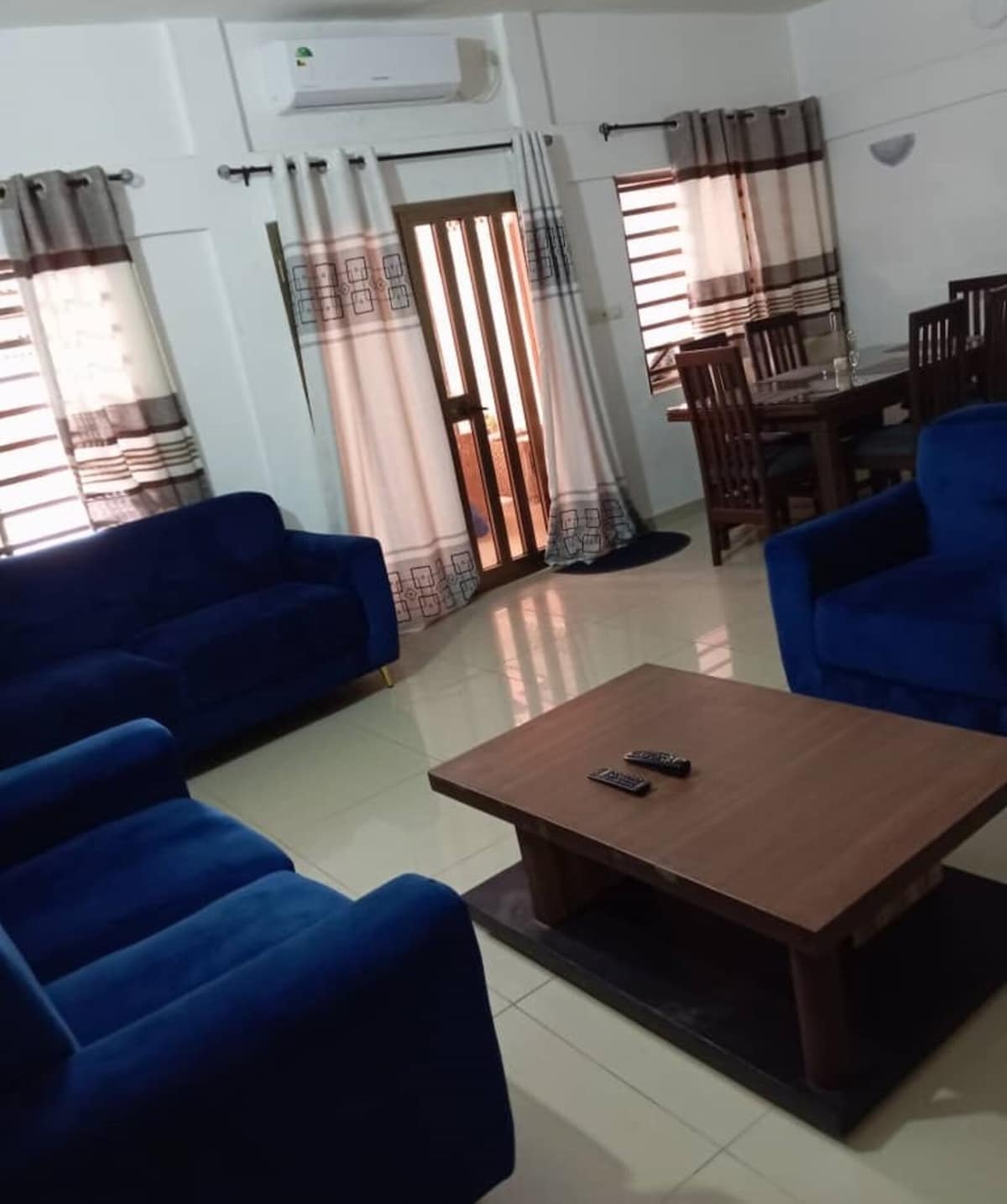 🏡 Résidence Cocotier – Logement meublé avec entrée personnelle à Abomey-Calavi. 🛏️ 1 chambre avec lit 3 places, 🛋️ salon avec TV Smart + Wi-Fi haut débit, 🍳 cuisine équipée, 🚿 salle de bain avec chauffe-eau, 🌿 terrasse avec table de jardin. Confort, intimité et autonomie pour vos courts ou longs séjours.