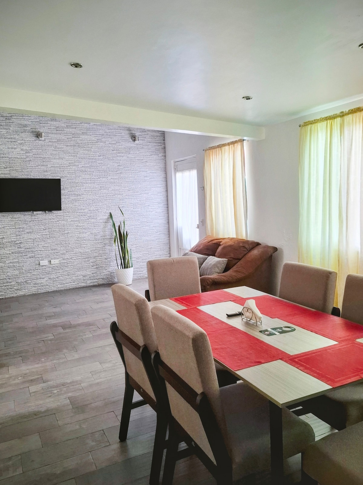 Amplia Casa Moderna super confortable y con amplio jardín solo para los huéspedes donde podrán disfrutar de un ambiente rodeado de naturaleza y sobre todo de gran privacidad , ideal para disfrutar de tu pareja y/o tu familia en un lugar super tranquilo. Estacionamiento para 15 autos, ideal para familia completa, muy cerca del Centro y de los principales Lugares de Eventos.