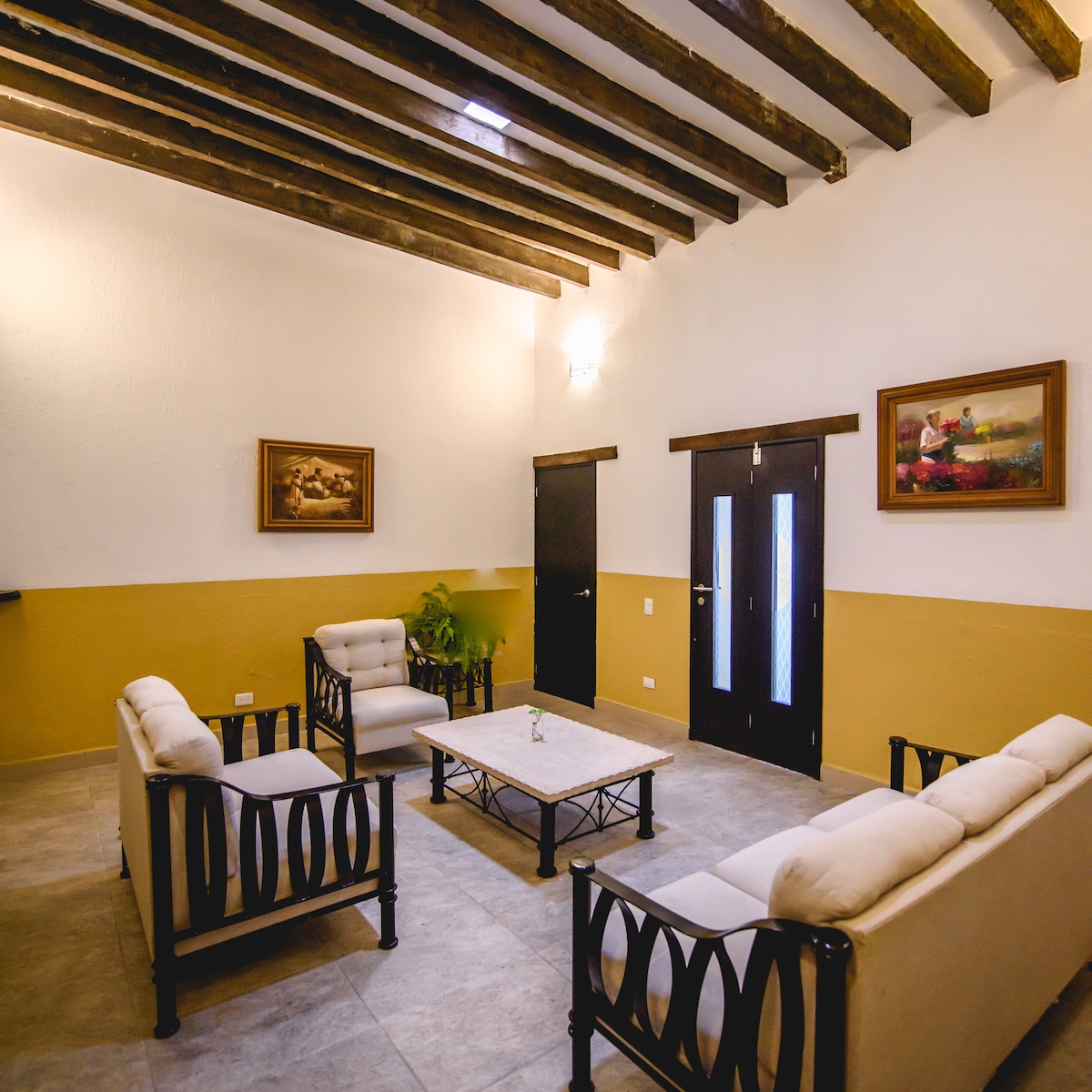 El departamento Colibrí se encuentra dentro del Hotel La Quinta Luna. Es un área espaciosa ideal para dos adultos y pueden alojarse dos niños menores de 8 años con sus papás. Tiene cocineta y desayunador con vista al patio y jardín. Desde allí se disfruta y aprecia una arcada colonial de hermosas proporciones. El patio y jardín tiene una magia especial, ya que la fuente y el sonido de los pájaros brinda paz y tranquilidad. El departamento tiene vigilancia día y noche.