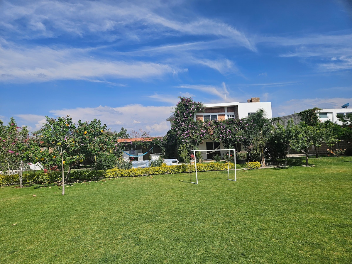 ¡Escápate con tu familia a Atlixco y vive una experiencia única! Disfruten del clima perfecto, alberca rodeada de árboles, asados en parrilla argentina y tardes de juegos con billar y ping pong. Por la noche, fogata bajo un cielo lleno de estrellas. Excelente ubicación a minutos del centro , mercado, Plaza Moraleda, Parque Xtremo. Con costo extra, una cocinera local puede preparar platillos típicos y tortillas hechas a mano. Comunidad segura, internet rápido. Momentos que no se olvidan.