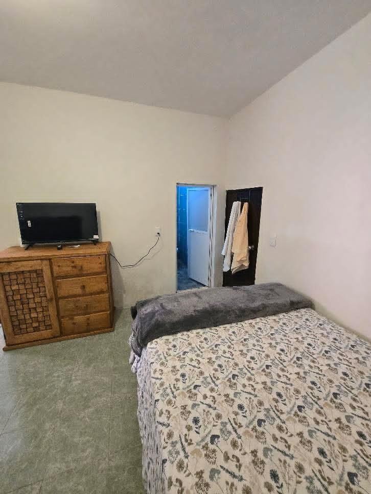 Casa donde podrás estar muy a gusto, cuenta con una recámara con televisión con cable, su baño limpio con regadera con agua caliente; una cocina con refrigerador, horno de microondas, cafetera, estufa; trastes, internet, antecomedor, zona céntrica,