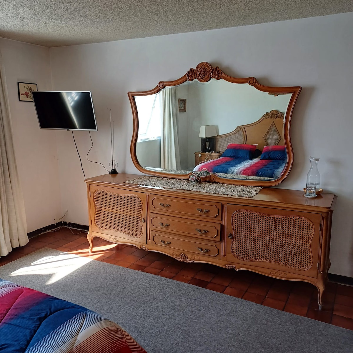 Esta habitación de muy amplio tamaño será ideal para tus vacaciones o viaje de negocios. Contamos con todas las amenidades para que estés a gusto. Cama king size, TV con servicios de streaming, internet rápido, estacionamiento, agua caliente, área de trabajo privada