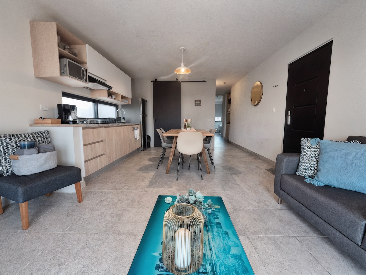 Para invitados a eventos y turistas en Atlixco: Relájate en un departamento luminoso de 2do piso, diseñado por un Superanfitrión 5 estrellas. Disfruta de 2 habitaciones con mosquiteros, un baño completo, cocina equipada y WiFi rápido. Tu espacio privado incluye acceso a un patio con fogata y estacionamiento gratuito. Ubicación estratégica: cerca de los principales jardines de eventos y la autopista para una llegada y salida sin complicaciones.