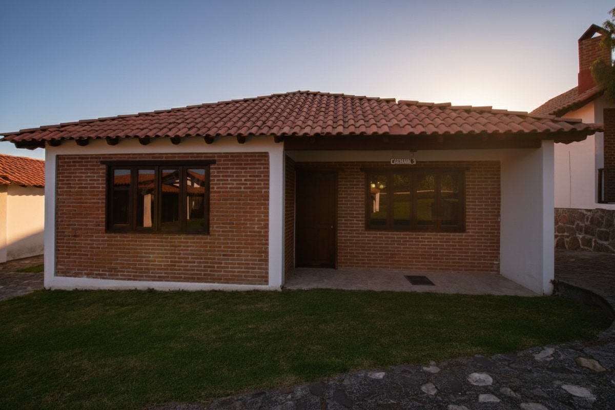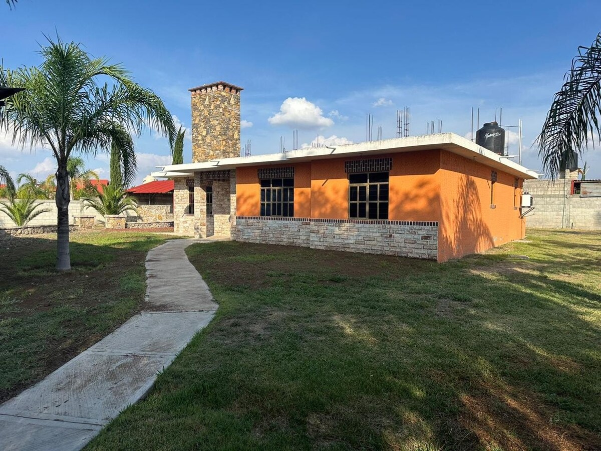 Disfruta de una estancia cómoda y tranquila en esta cabaña equipada con todo lo necesario para descansar y convivir en un entorno natural y céntrico Características principales: •2 recámaras •3 camas •1 baño completo •Cocina equipada •Sala de estar con televisión •Aire acondicionado •Balcón con vista agradable •Área social para cocinar, perfecta para reuniones y parrilladas •Espacio para niños •Terreno amplio para actividades al aire libre, juegos, fogata o eventos