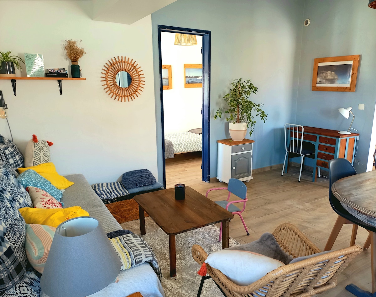 Two-bedroom apartment on the shore with an amazing ocean view. 2 minute walk from the beach. Great spots for surf. The social area is really pleasant and the terrace has a perfect southwest orientation to enjoy sunny days and an amazing sea breeze. Moonlight also worthy! Located in a very quiet area but close to restaurants, market and cafés. The kitchen is fully equipped with vitroceramic cooker, electric oven, microwave, dish washer, Coffee machine, toaster and a washing machine.