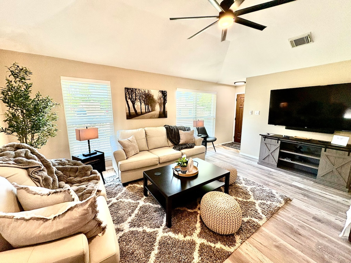 What you’ll ❤️ about your stay: - Centrally-located in the heart of Arlington - Within minutes of AT&T Stadium, Texas LIVE, Globe Life Field, Six Flags, Hurricane Harbor, University of Texas at Arlington, Billy Bob's of TX, Famous Stockyards of Fort Worth, & DFW Airport - 19 min walk to AT&T Stadium - Walking distance to shops, restaurants, & bars - Fire Pit/Grill/Outdoor Dining - Fully equipped Kitchen (pods/coffee provided) - High Speed Internet - (3) Smart TVs - Full-Size Washer & Dryer