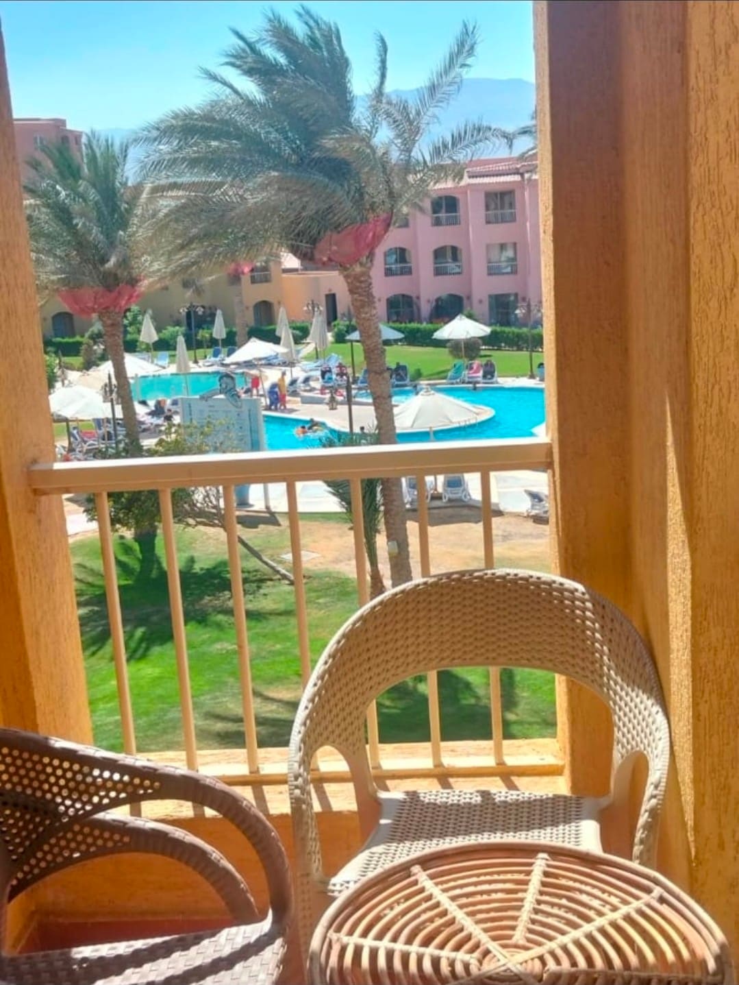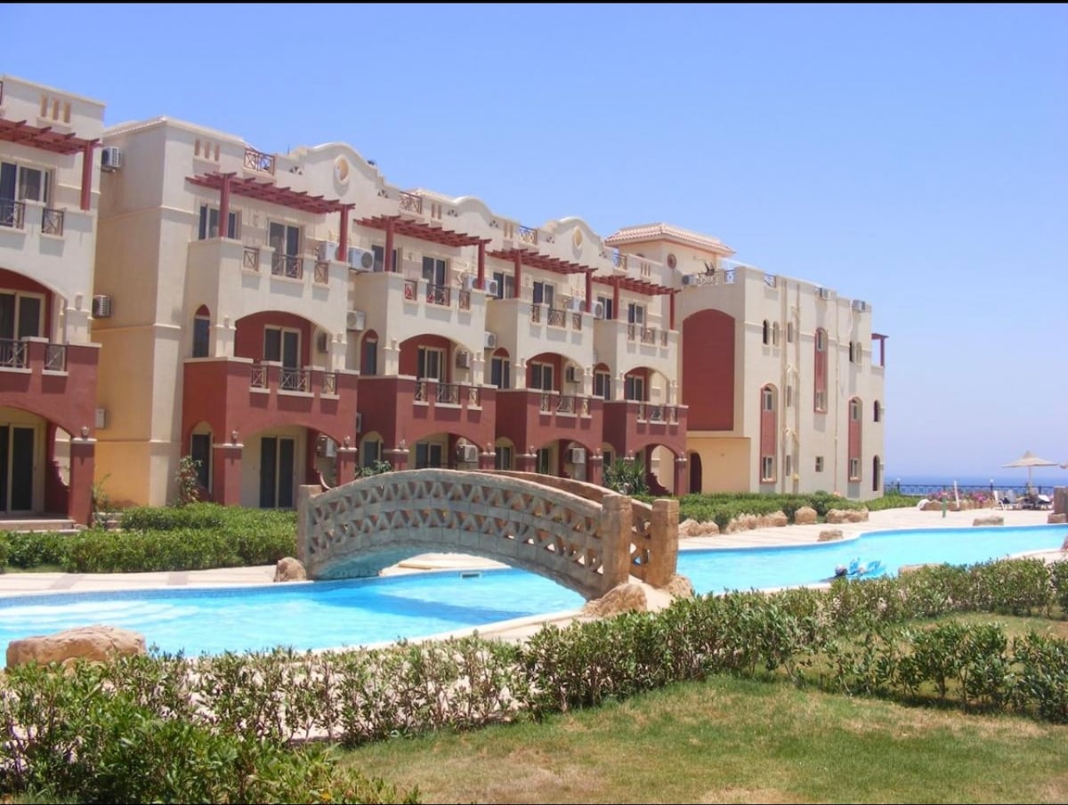 Our chalet is located at Coral Sea beach resort. The chalet is a 5min walk from the beach. Relax on the beach, enjoy a walk on the unique 1km long pier where you can deep dive or do fishing. The resort offers 2 swimming pools and aqua park for kids. The kitchen has all necessary utilities. Central air conditioning, 3 bedrooms and 2 full bathrooms and can accommodate 6 people. There is a supermarket at the resort entrance. The resort is close to the New Galala highway