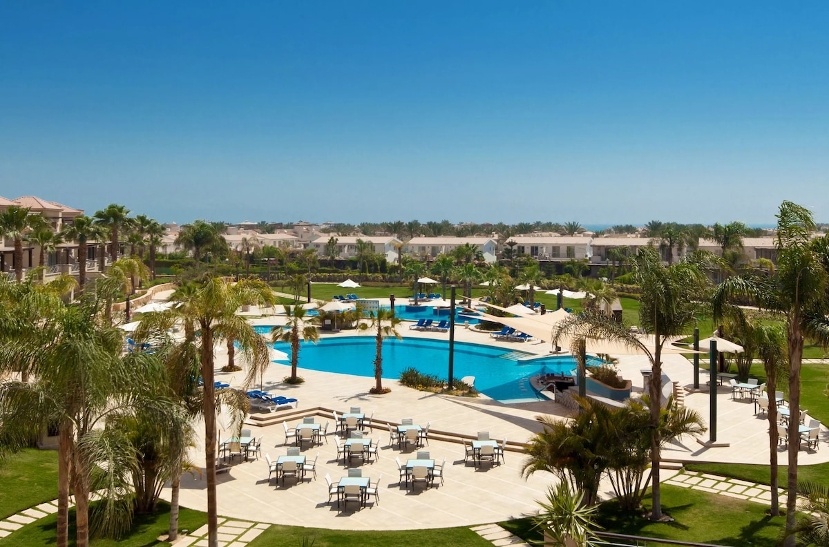 Where golf meets serenity—just 100 km from Cairo Airport, this coastal hideaway is set along the Red Sea with a 27-hole par-72 course made for purists. Swing to the rhythm of the waves, then unwind with beach yoga, snorkeling, spa bliss or poolside cocktails. Steps from soft sands and near Porto Marina & Teda Fun Valley, it’s playtime with a view.
