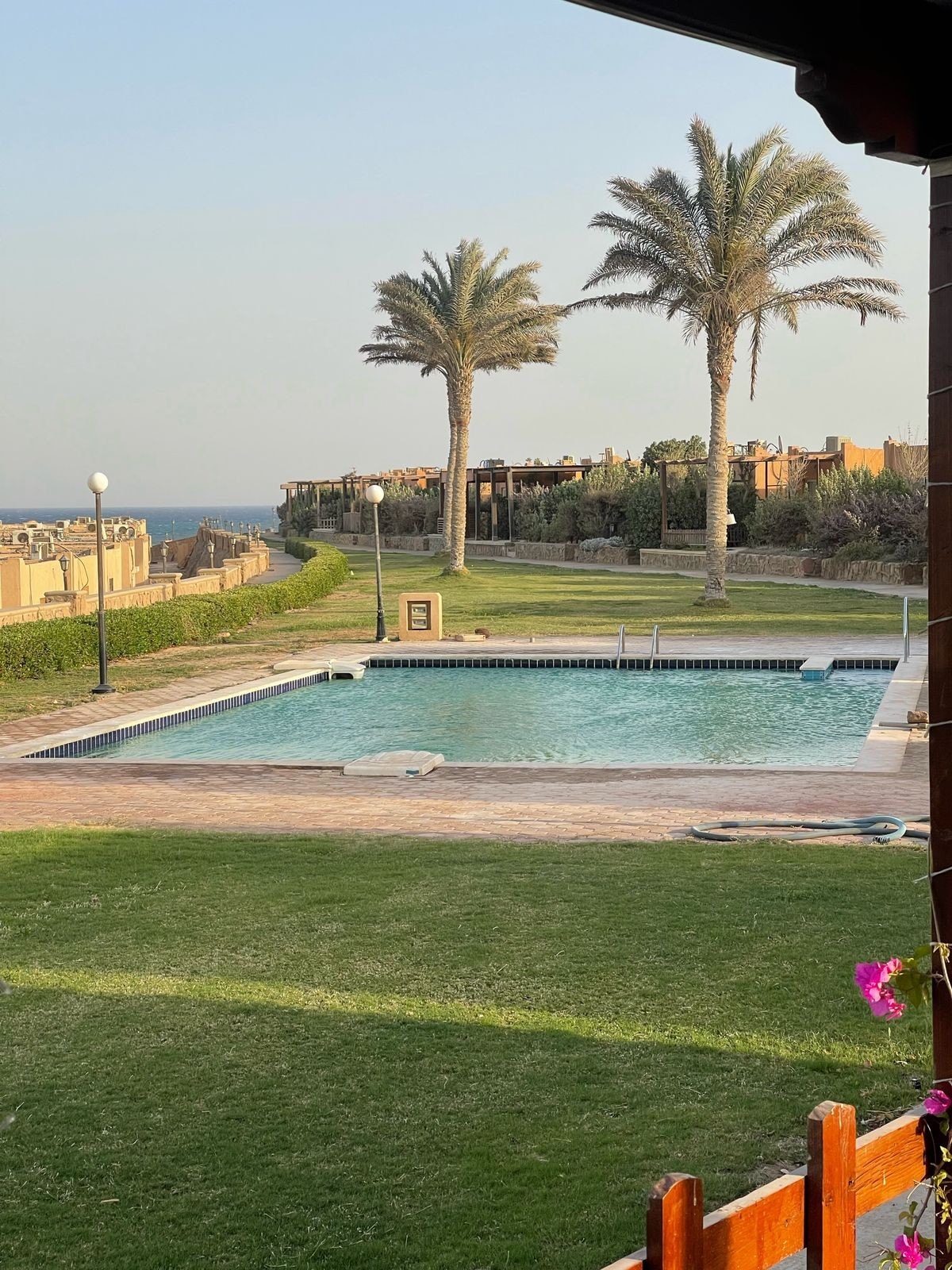 💟💟للعائلات للايجار اليومى ( ليس أقل من ليلتين ) قرية واحة الحجاز بالسخنة فيو على البحر ( ٥ دقائق مشي ) وامامه حمام سباحة ، علي بعد ١٥٠ ك من القاهرة ، طريق الزعفرانة ، قبل بورتو السخنة ب ١٥ ك . ** The chalet is 1 bedroom with 2 double beds, 140 cm, a wardrobe, a window, and split air conditioning - 1 small room with a sofa bed, a dresser, mirrors, and a small wardrobe. And a fan - 1 bathroom with a foot bath, hot water - A large balcony and a swing - Reception with open kitchen with AC