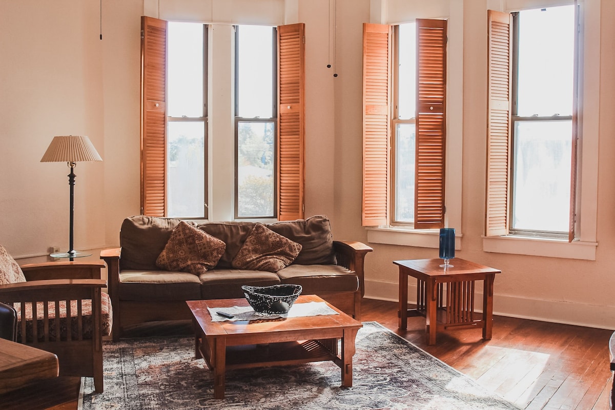 Tucked in downtown Lafayette, this elegantly restored 1895 Queen Anne cottage offers a private suite with a cozy king bedroom, full bathroom, charming parlor with smart TV, and dedicated dining area, blending historic charm with modern comfort. Just 1.7 miles from Purdue University, it’s perfect for couples or small groups (up to 4 guests). Request a cot or sofa bed in advance. Enjoy historic Lafayette with all the comforts of home!