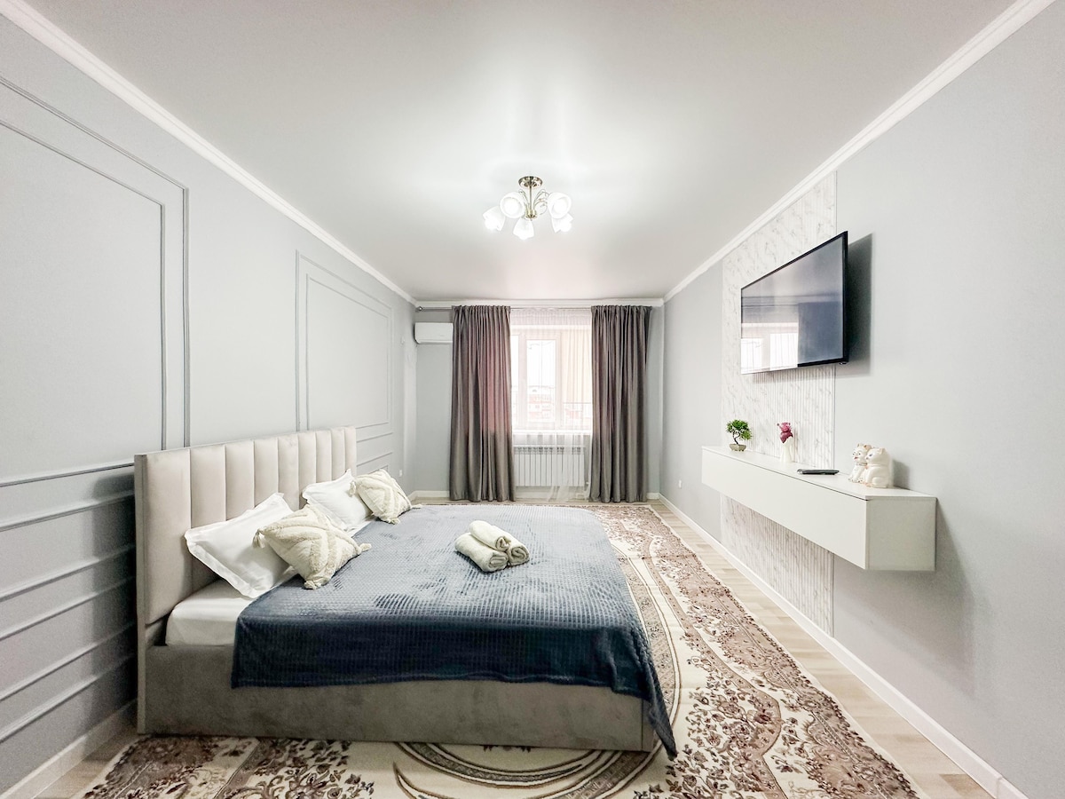 Добро пожаловать в уютный и стильный уголок! Наше жилье расположено в район Нурсая знаменитом своей особенностью района или развлечениями. Наше жилье создано с любовью к деталям, чтобы обеспечить вам уют и удобство в каждой комнате. Мы предлагаем удобства жилья, , полностью оборудованную кухню, уютные спальные места, современную технику и Wi-Fi для вашего комфортного пребывания.
