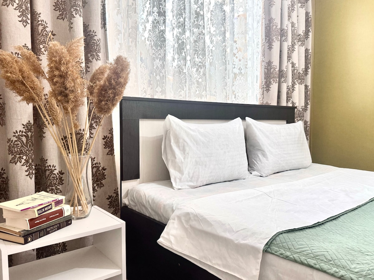 Жилье передаёт атмосферу домашнего уюта, находится в спокойном тихом дворике с футбольным полем, рядом находится магазины, супермаркет Лидер. Сам район в пяти минутах от конечной остановки, центрального стадиона, набережной и центрального бассейна, дома культуры. В самих апартаментах оснащено всеми удобствами(постельные, кухонные принадлежности)смарт ТВ-подключен MEGOGO. Кафе, кофейни, рестораны, сеть быстрых питаний DODO pizza все находятся в районе Жилгородка. Добро пожаловать!