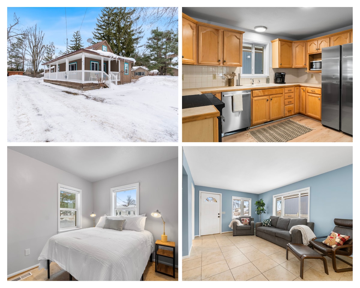 We’re minutes from Treetops Ski Resort and the snowmobile trail sits right at the end of our road! This central air-conditioned lakefront ranch overlooks Kassuba Lake, sleeps 6, and features 2 cozy bedrooms, 1 bath, a full kitchen and a spacious living/dining area. Bedroom one has a king bed; bedroom two has two twin-over-full bunks. Large windows bring in natural light, and the kitchen is fully stocked with cookware and dinnerware. Enjoy a 58" Smart TV, HDMI gaming hookup, DVD player, and WiFi.