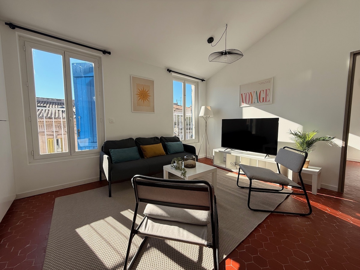 Perched high above the ground floor and overlooking the bay of Marseille, this sophisticated and cozy 1 bedroom studio apartment in the center of the city provides the perfect blend of urban convenience and natural beauty. As Marseille apartments go, this generous, air-conditioned space is at the summit of Airbnb options in the region, offering all-day sunlight and endless sea and mountain views.