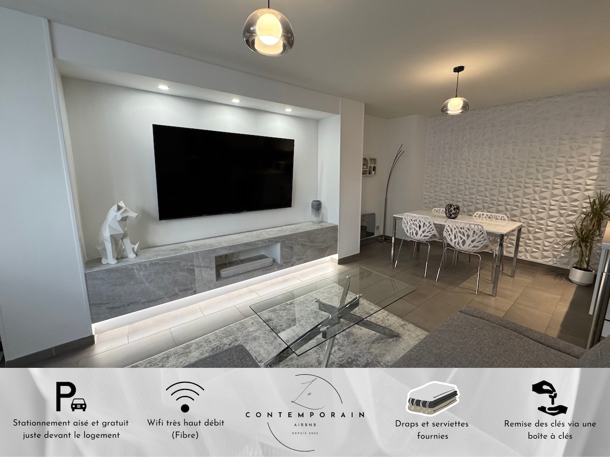 "Le Perchoir" is a bit like the Rooftop of Troyes, no other accommodation offers such a breathtaking view of the historic center :) You will be seduced by the services of this tastefully decorated and equipped apartment! ☆ Panoramic view of the city center ☆ Located 100 meters from the train station ☆ Town center 100 meters from the apartment ☆ 4K projector ☆ High-end finishes ☆ Simmons bedding 160x200 ☆ High-end TV & sound system ☆ Shops 1min away Need information? Contact me :)
