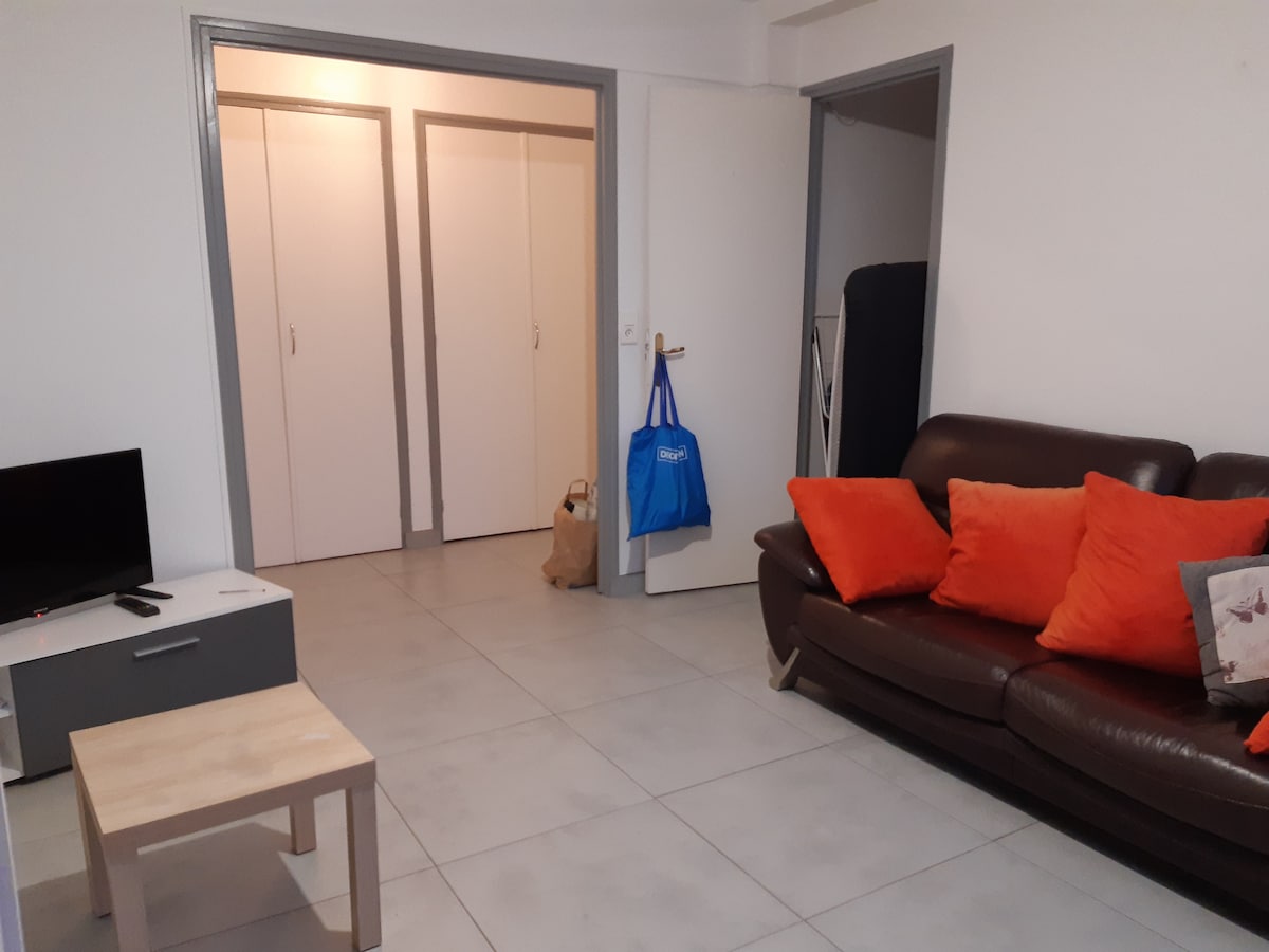 Appartement en rez de jardin , climatisé, totalement indépendant (arrivée autonome) et comprend une grande chambre : lit King size avec télé 40", une sdb avec wc, cuisine ouverte sur un salon avec un canapé convertible1,60m de bonne qualité à mémoire de forme. 1Baie vitrée vue sur un extérieur . Le logement dispose de 2 emplacements parking dans une cour fermée (vidéo). La propriété possède un étang où il est possible de se promener et de voir🦆🐿️ écureuils nous fournissons draps serviettes
