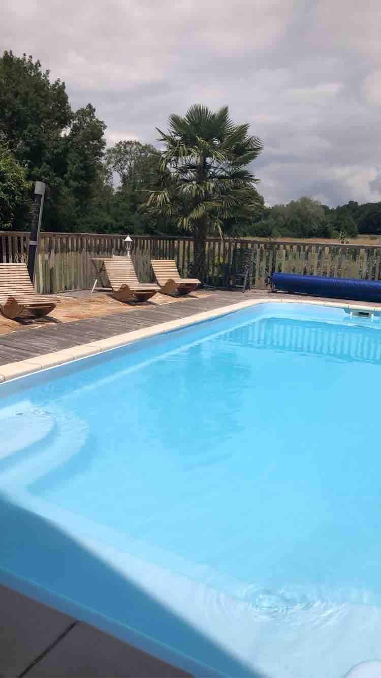 En Juin Profitez de remise sur 1 semaine, faire une demande Notre gite restauré est indépendant de notre maison d'habitation. Il dispose au RDC d'une entrée, 1 salle d'eau, 2WC La cuisine ouverte sur le salon donnant sur un patio avec préau et barbecue privatif. A l'étage, un palier desservant 2 grandes chambres avec lits de 140, 1 lit de 90 et 2 lits Bébé Les autres espaces extérieurs sont partagés, cour, piscine sécurisée et sauna, table de ping-pong, grand pré avec balançoire, trampolin