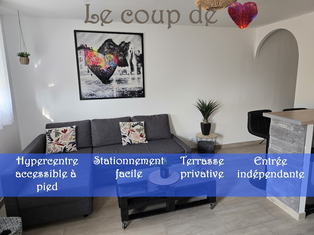 Logement en rez de chaussée avec terrasse proche de l'hypercentre (célèbre bouchon de Champagne) et de toute commodité. La structure du coeur de Troyes est à moins de 10 minutes à pied. Le stade de l'Aube est à 5 minutes en voiture et le centre Mac Arthur Glenn à 10 minutes. Idéalement situé car un accès périphérique est à un kilomètre. Entièrement pensé pour satisfaire tout le monde. Options possibles sur demande : -barbecue (charbon fourni 10€) -appareil à raclette(10€)