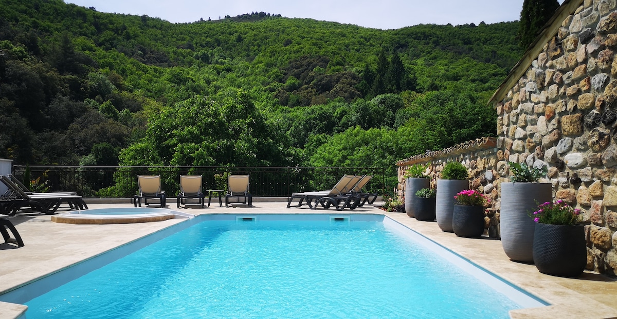 Maison de charme climatisée de 110m2 avec piscine située en plein cœur de la vallée de la Cèze et 10 minutes à pied de la rivière de la Cèze. Vous serez séduit par son confort avec sa décoration épurée et raffinée. Mais aussi par son emplacement idéal pour la détente et le tourisme. Vous profiterez du couché de soleil sur la terrasse avec les bains de soleil mis à disposition autour de la piscine, le tout est complètement clôturé.