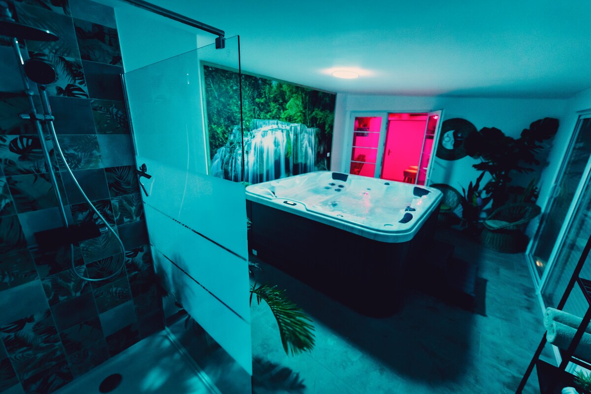 Laissez-vous séduire par Nectar d’Amour, un cocon spacieux et romantique, idéal pour une escapade à deux. Jacuzzi intimiste, douche hydromassante, lit King Size à mémoire de forme, cuisine équipée et grand écran inclinable vous attendent pour un séjour tout en confort et en sensualité. Une parenthèse de détente et de plaisir à savourer pleinement.