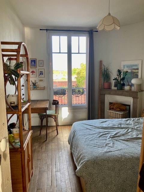 Appartement de deux pièces traversant, typiquement parisien, refait avec gout à neuf en 2025. Merci de noter que le lit est un petit lit double de 140x 190. L'immeuble est un ancien, il se peut que vous entendiez parfois les voisins mais rien de très gênant.