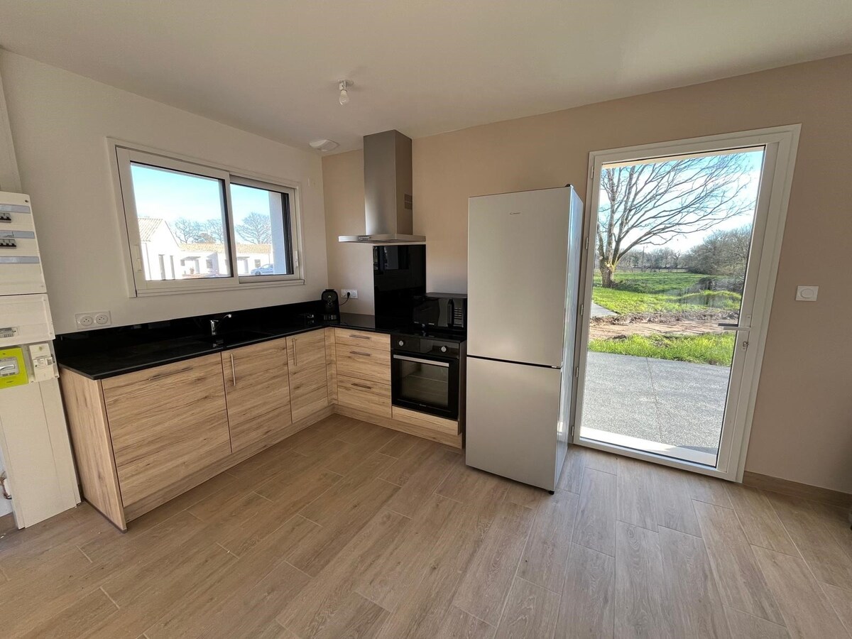 Romantic cottage rated 5 stars, near Guittière beach. For a well-being stay. Fully equipped cocooning house, with balneotherapy and light therapy and let yourself be pampered in a green setting, in the heart of the countryside! Enjoy a moment of relaxation, possibility of duo massages, indoors or in the garden with the field of birds! For your comfort and to stay in this bubble of well-being, chef Romuald Chevalier can deliver you a gourmet meal!