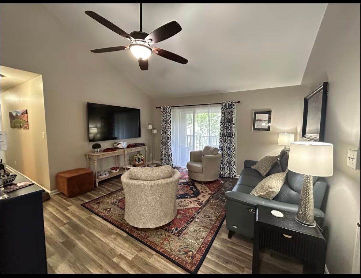 This 2-bedroom, 2.5-bath condo comfortably sleeps up to 8 guests, making it ideal for families, or game-day gatherings. Located just 1 mile from Toomer’s Corner What You’ll Love: Sleeping Arrangements: queen bed, bunk bed, a fold-out couch, with a regular couch also. Amenities: Fully equipped kitchen, in-unit washer and dryer, and Wi-Fi. Outdoor Space: A spacious back porch, great for morning coffee or evening drinks. Parking: Park right in front of the front door for ultimate convenience.