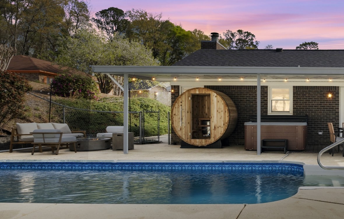 Relax in this calm, stylish space. Take a swim, rejuvenate in the jacuzzi, or sunbathe and enjoy the garden view. Bungalow Marguerite, a three-bedroom open-concept home is located in North Columbus, GA. It is a safe, and private environment. Come for a family staycation or military graduation celebration, reminisce with a girls' weekend, or have bromance time with the guys. Located 20 minutes from Ft Benning, 5 minutes from Publix, and 10 minutes from restaurants, shopping, and downtown.