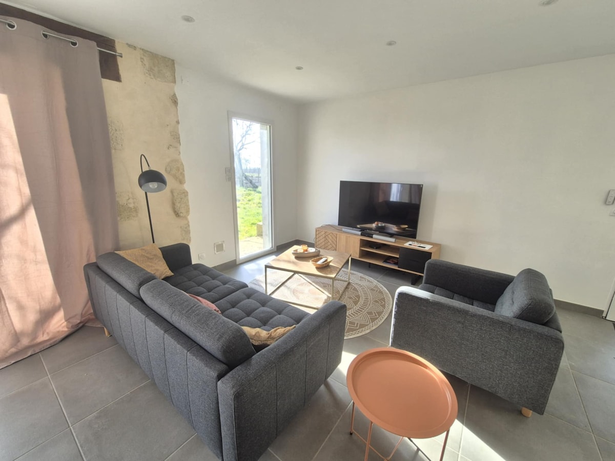 Maison de ville en pierre idéalement située en plein centre d'un petit village dynamique. A quelques pas de tous les commerces Rdc avec une cuisine entièrement équipée (8,5m²) ouverte sur pièce à vivre de 37m² avec canapé convertible de qualité. Un premier étage est composé d'un WC, d'une salle de bain (Baignoire et douche à l'italienne) ainsi que deux chambres. Le deuxième étage est une grande chambre mansardé avec climatisation. Draps et serviette en option (+10€ / Chambre)
