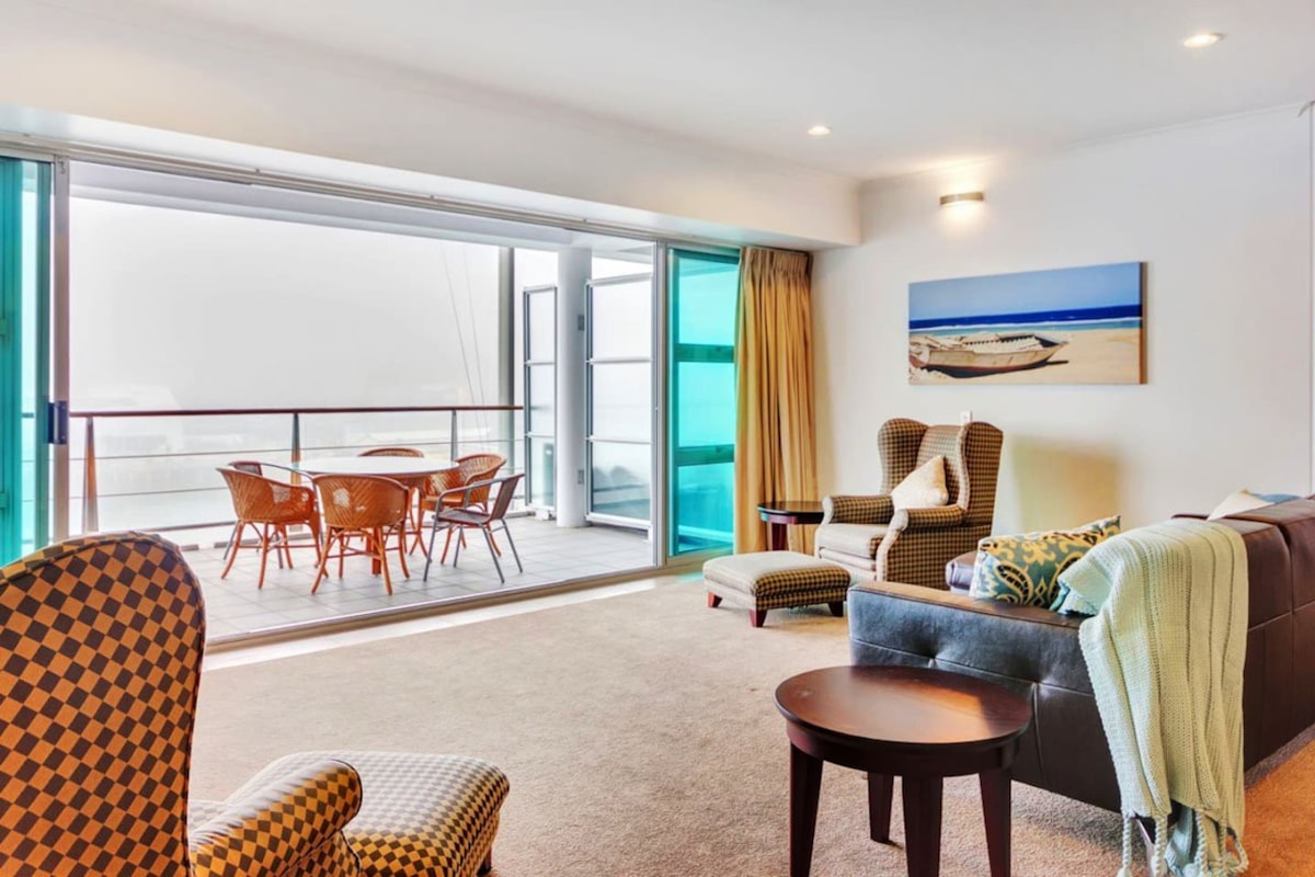 Spacious one-bedroom apartment featuring open living space, separate bedroom, bathroom and balcony and smart TV with Chromecast. These apartments feature a fully equipped kitchen and with cooktop, oven, microwave, dishwasher and full-sized fridge-freezer for your comfort and convenience. One Bedroom Apartments with no air conditioning 1 x King Bed Included Occupancy: 2 Max guests: 3 - extra rollaway $30 p.n