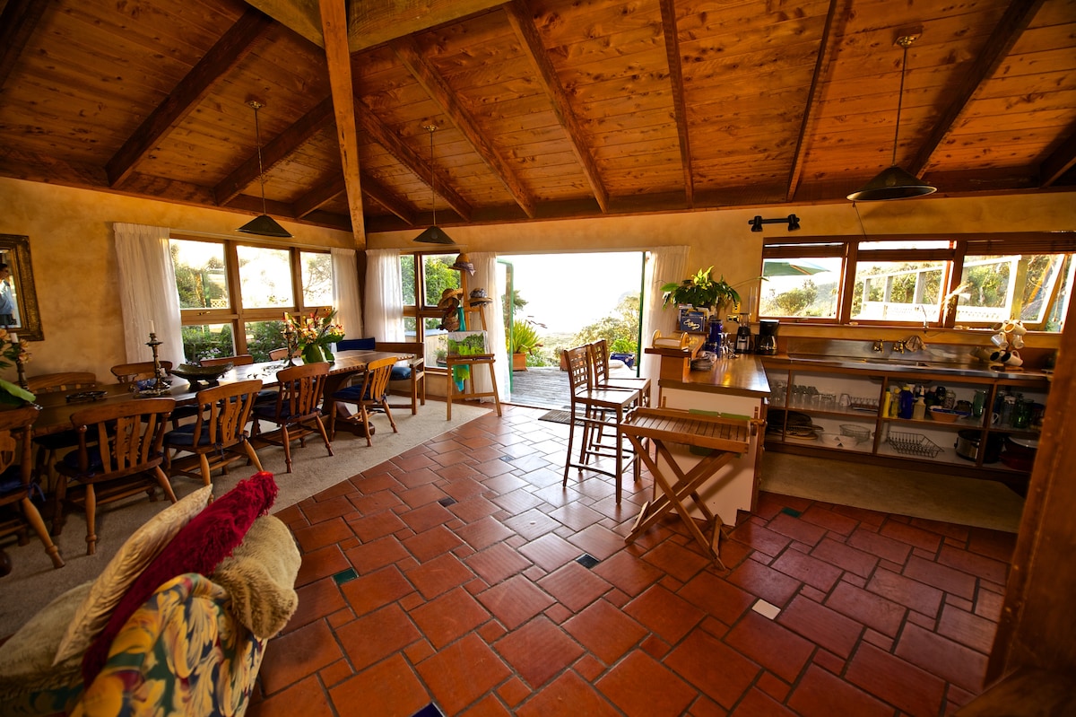 The Retreat is nestled in protected native rain forest with stunning views down to Lion Rock at Piha Beach 15 mins drive away. You will be rested & rejuvenated after your stay. Designed by Chris Tate, who won international acclaim for his "Glasshouse" in Titirangi. Watch the sun go down from the deck with a glass of wine, enjoy the outdoor bath under the stars, then have a wonderful peaceful sleep.