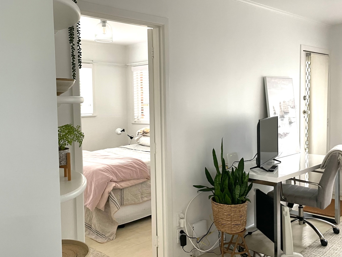 Escape to a charming and cozy 1 bedroom home in the quiet and beautiful North Shore of Auckland. This handy location offers a quick trip to the CBD, public transport available at your doorstep and a super cheap Uber ride to the city too. It's also 10 mins drive from multiple beaches 🥰 This entire house offers you a private oasis with a fully fenced backyard, outdoor furniture/dining area, and fairy lights, perfect for enjoying your meals in the fresh air day & night.