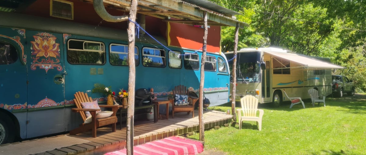 We have two buses side by side for group bookings for four or more people. This private wee campsite has all the amenities for friends or family looking for privacy this summer. Beautifully surrounded by nature,the river and sea are right here on your doorstep. Cathedral Cove and Hot Water beach are just over the hill and all the Coromandel activities are within an hours drive. Perfect place to host reunions and pizza parties for 3 night stays Comfortable Affordable Unique Private Accommodation