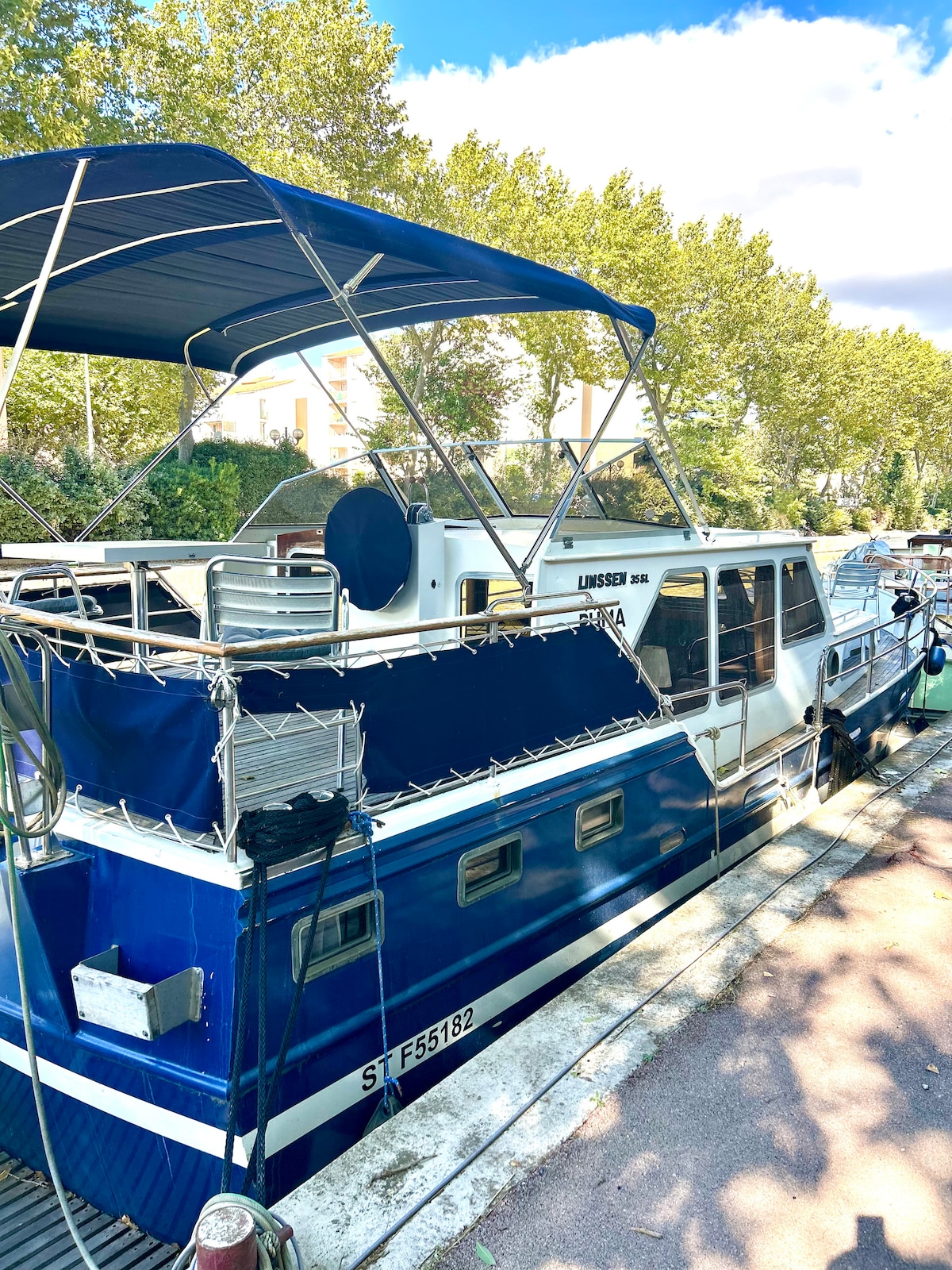 Centre ville de Narbonne sur le canal de la Robine. Chambre double équipée d'une baignoire balnéo. Climatisation réversible dans le carré . Balancelle sur le pont extérieur . Possibilité de déco pour événements particuliers. Quartier calme à 5 minutes àpieds du centre-ville historique. Commerces à proximité. Stationnement gratuit sur les quais. A 5 minutes en voiture du restaurant les grands buffets. A 20 minutes des plages de Narbonne et Gruissan. Un instant cocooning sur le canal.