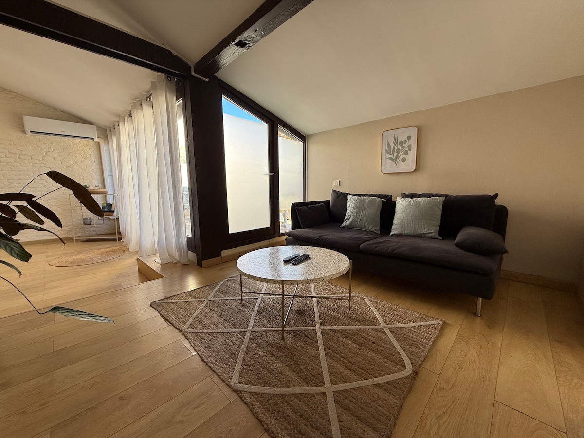 Ce superbe appartement de 50m2 est situé au 2ème étage sans ascenseur (escaliers en colimaçon) dans l'arrière cours d'un immeuble de 1850. Son emplacement paisible et central, est idéalement placé derrière les Halles à deux pas du centre ville. Rénové et décoré avec goût, il comprend un salon confortable avec canapé lit, une cuisine équipée, un coin bureau, un toilette séparé et une belle suite parentale avec salle de bain/dressing. Profitez de notre belle ville dans un logement de charme !