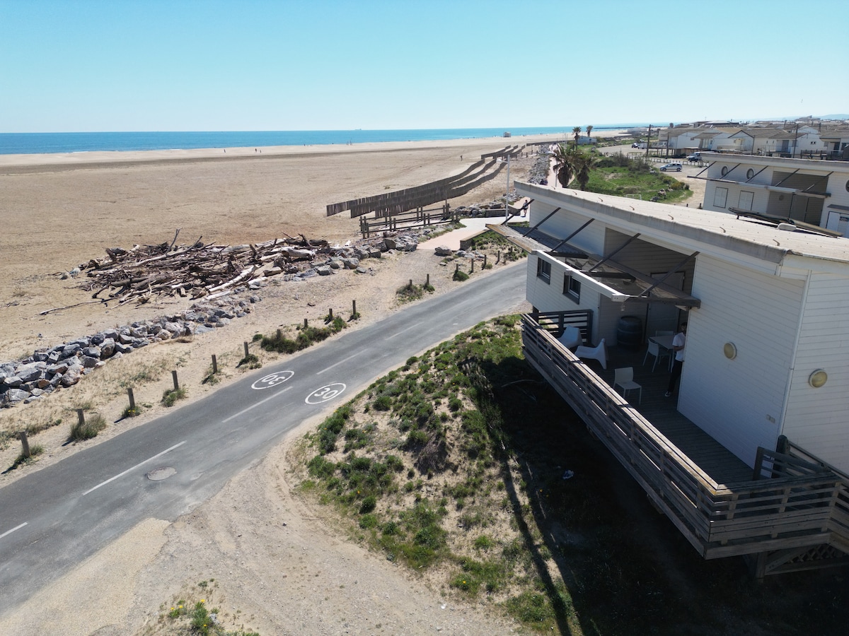 Chalet typique au bord de mer à Gruissan, idéal pour des vacances les pieds dans le sable ! Profitez d’un salon climatisé et lumineux, d’une cuisine équipée, de 3 chambres climatisées et confortables et d’une terrasse ensoleillée pour vos repas ou apéros. À quelques mètres de la plage, vivez l’ambiance unique des chalets de Gruissan entre baignades, balades, marchés colorés et couchers de soleil inoubliables.