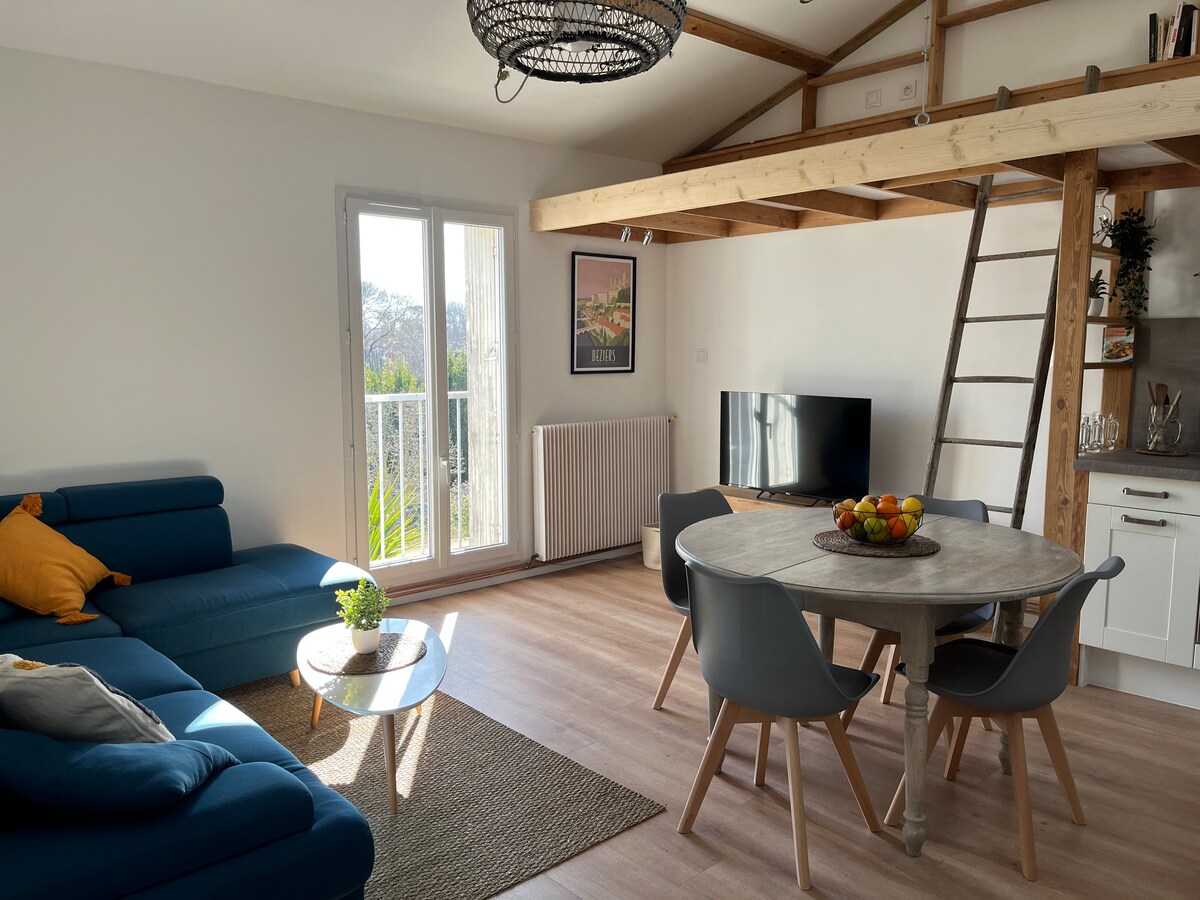 Petit appartement au 2ème étage dans une ancienne auberge le long du canal du midi. Situation idéale, à 10 min à pied de la gare et des commerces, ce petit coin de paradis offre la tranquillité d'une impasse le long de l'eau. Vous vous réveillerez le matin avec une vue sur les bateaux et la nature. Stationnement gratuit dans la rue.
