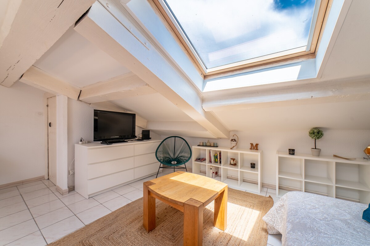 Studio cosy de 30 m2 avec petite mezzanine + terrasse. Lumineux, calme en coeur de ville, aux abords directs de la place de la République On espère que vous serez sous le charme de ce pied à terre - un peu dans les airs - que nous avons voulu original, chaleureux et aussi pratique. Loin de la froideur de certaines locations saisonnières en BA13 et meubles IKEA (bon...nous on en a un peu quand même...), nous avons gardé le charme de l'ancien avec une décoration où chaque objet a une histoire...