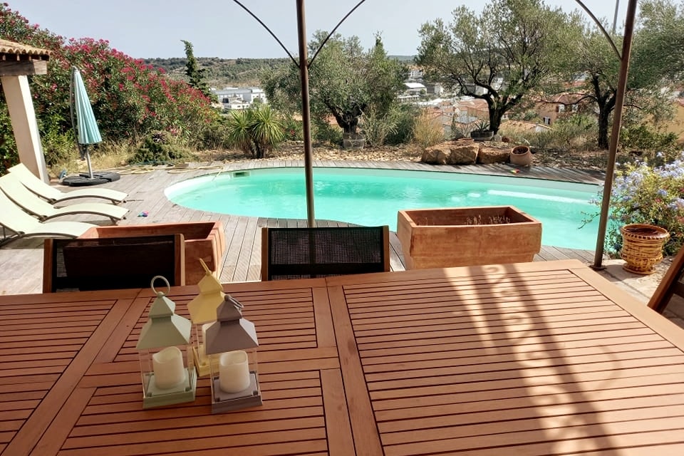 Appartement T2 pour 4 adultes et 1 enfant maximum , accès privatif et place de parking intérieur pour la voiture. Rénové en 2024 Appartement meublé, cuisine équipée, Salon-séjour , une salle de bain W.C avec douche. Côté nuit : 1 chambre comprenant un lit double + 1 lit pliant pour enfant Dans le Salon-séjour, un canapé lit 2 places. Terrasse / barbecue / cuisine d'été. Piscine non-chauffée 10x5 ( Ouverture en saison estivale du 01/06 au 30/09 voir + si les conditions le permettent )