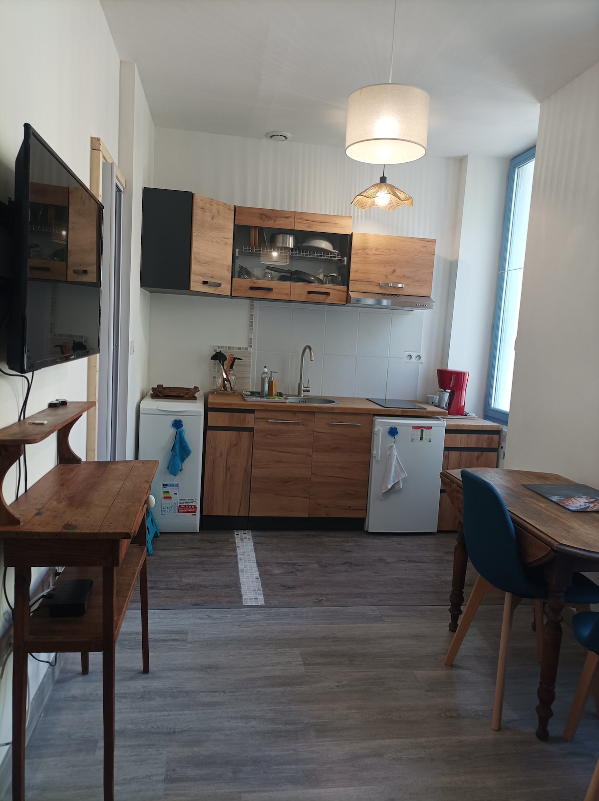 Profitez d' un séjour cosi, au cœur du centre d Ax, sur place Roussel ombragée. Séjour détente, romantique, après une journée de travail...Tarif curistes "2 semaines acheté la 3 ème offerte" soit 650€ ht, hors vacances scolaires. Aux pieds des remontées, sources chaudes, cures thermales, casino, restaurants et tous commerces. Parking gratuit Idéal 2 personnes, capacité maximal de 4 Chambre séparée lit 140*190 Cuisine Salle de bain / Toilettes Séparés Casier à ski Produits de base disponibles
