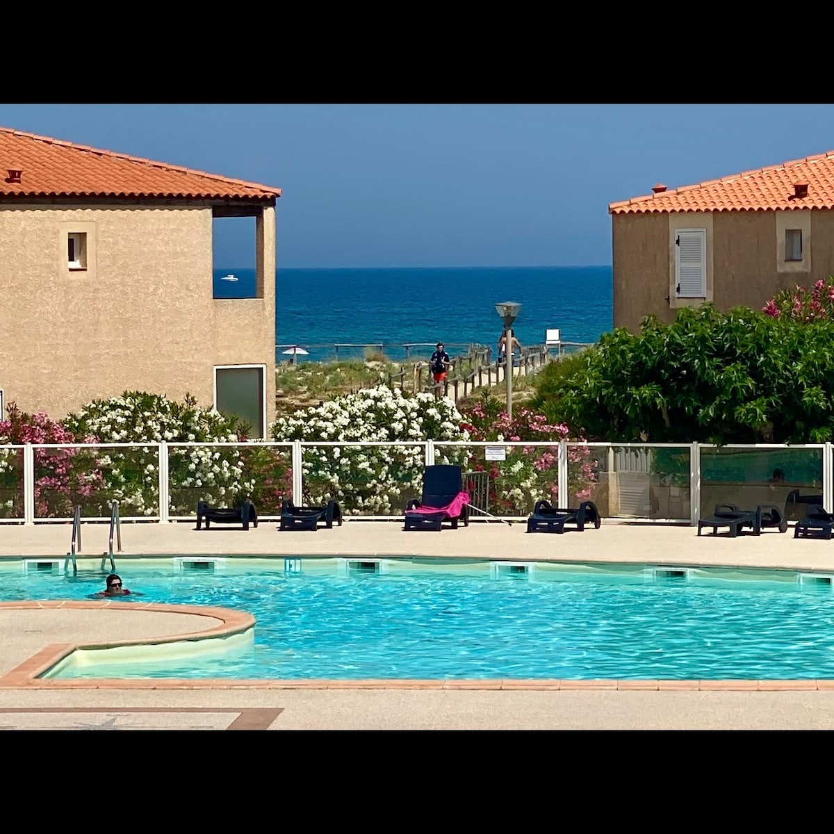 Notre villa à Le Barcares en FRONT DE MER, un cocon très confortable offrant une magnifique VUE MER du SOLARIUM, une atmosphère de détente grâce à son JACUZZI, de très beaux espaces extérieurs face aux deux PISCINES, ainsi qu’une grande tranquillité dans une résidence privée sécurisée avec place de parking. Sans route à traverser pour se rendre à la plage, au calme tout en étant proche des commodités, notre villa est l’endroit idéal pour s’immerger dans un lieu paisible et se détendre.