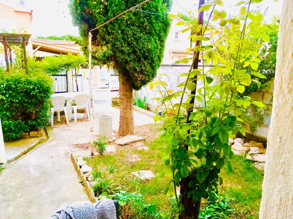 2 间带花园的房间,距离海滩 5 分钟