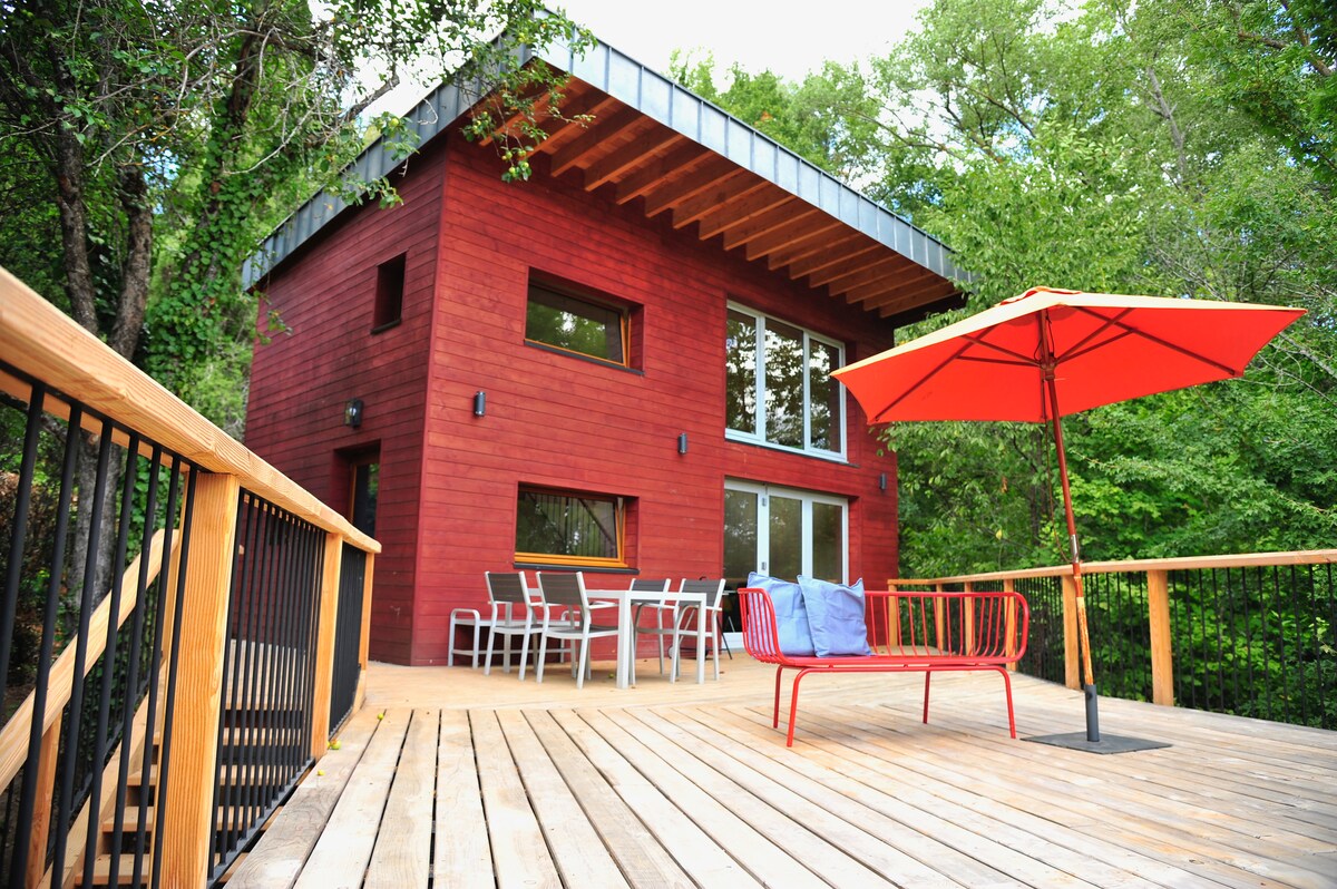 Two different houses interconnected - in the beautiful village of Saint-Jean-de-Paracol : our designer new built top chalet and the apartment come complete with a secluded patio and large terrasse overlooking the village. Ideal for family getaways or small reunions ... for folks who love walking, hiking, cycling, exploring, cooking (our kitchen is great for foodies!) and just chilling - the perfect base to explore this fascinating region of the south of France, the heart of Cathar country.