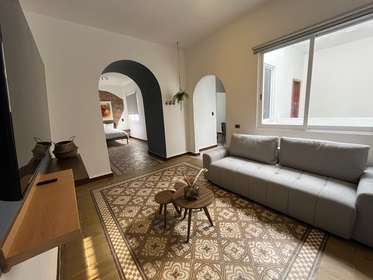 Beautiful apartment in a 17th century house beautifully renovated, in a perfect location, its located in the heart of the city in the famous Callejón de los Sapos, the most visited street in the city center and its only a 5 minutes walk to the Zócalo and the Puebla Cathedral, you will be surrounded by restaurants, cafes, bars, craft and antique shops.