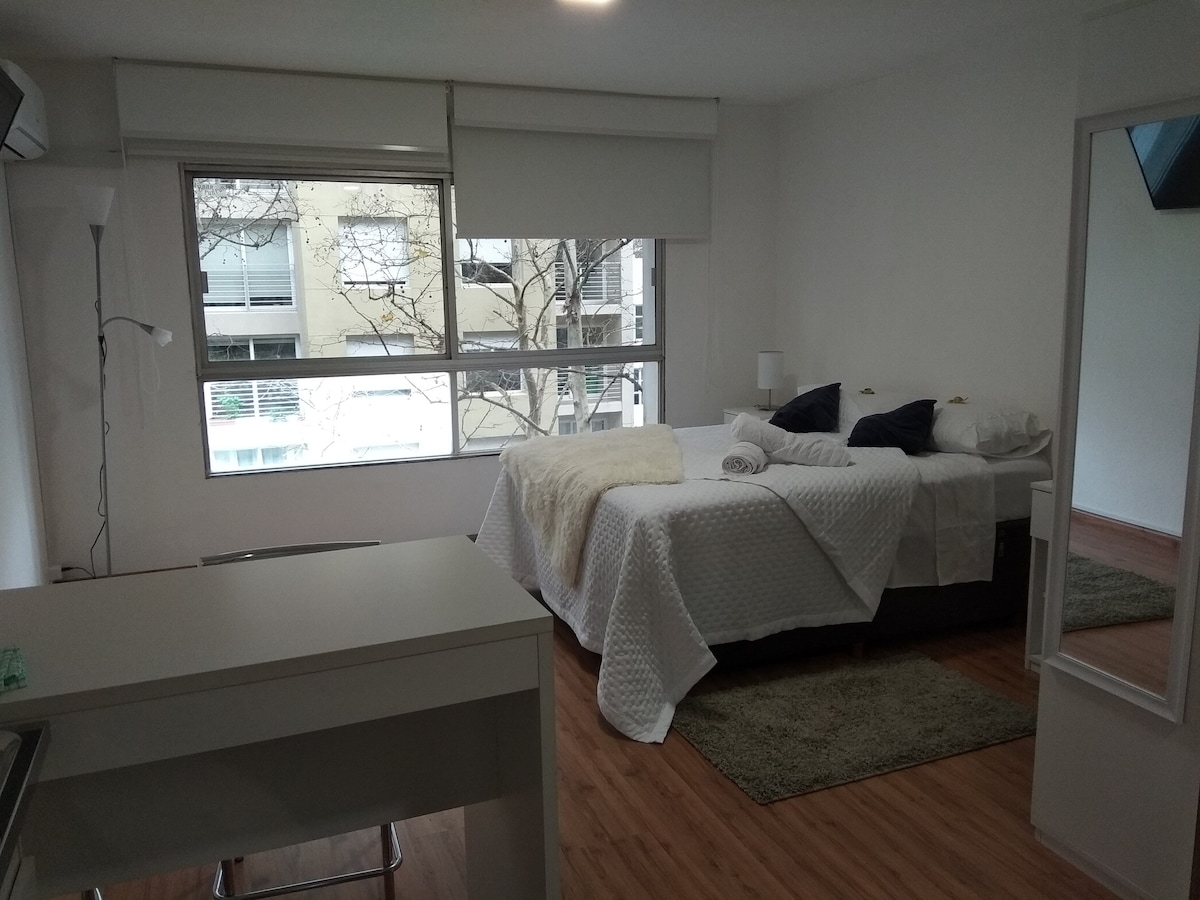Apartamento céntrico a estrenar para hasta 3 personas, frente a Plaza Entrevero. Monoambiente muy luminoso con cocina integrada, baño completo, cama una plaza (rebatible), sillón cama de dos plazas. Totalmente equipado para 3 personas: ropa de cama (incluye abrigo), set completo de toallas, vajilla. TV Smart 40', Netflix. WIFI. Aire acondicionado Edificio nuevo, portería y ascensores. Ubicación ideal, pleno centro de Montevideo, a media cuadra de la avenida principal (servicios y transporte)