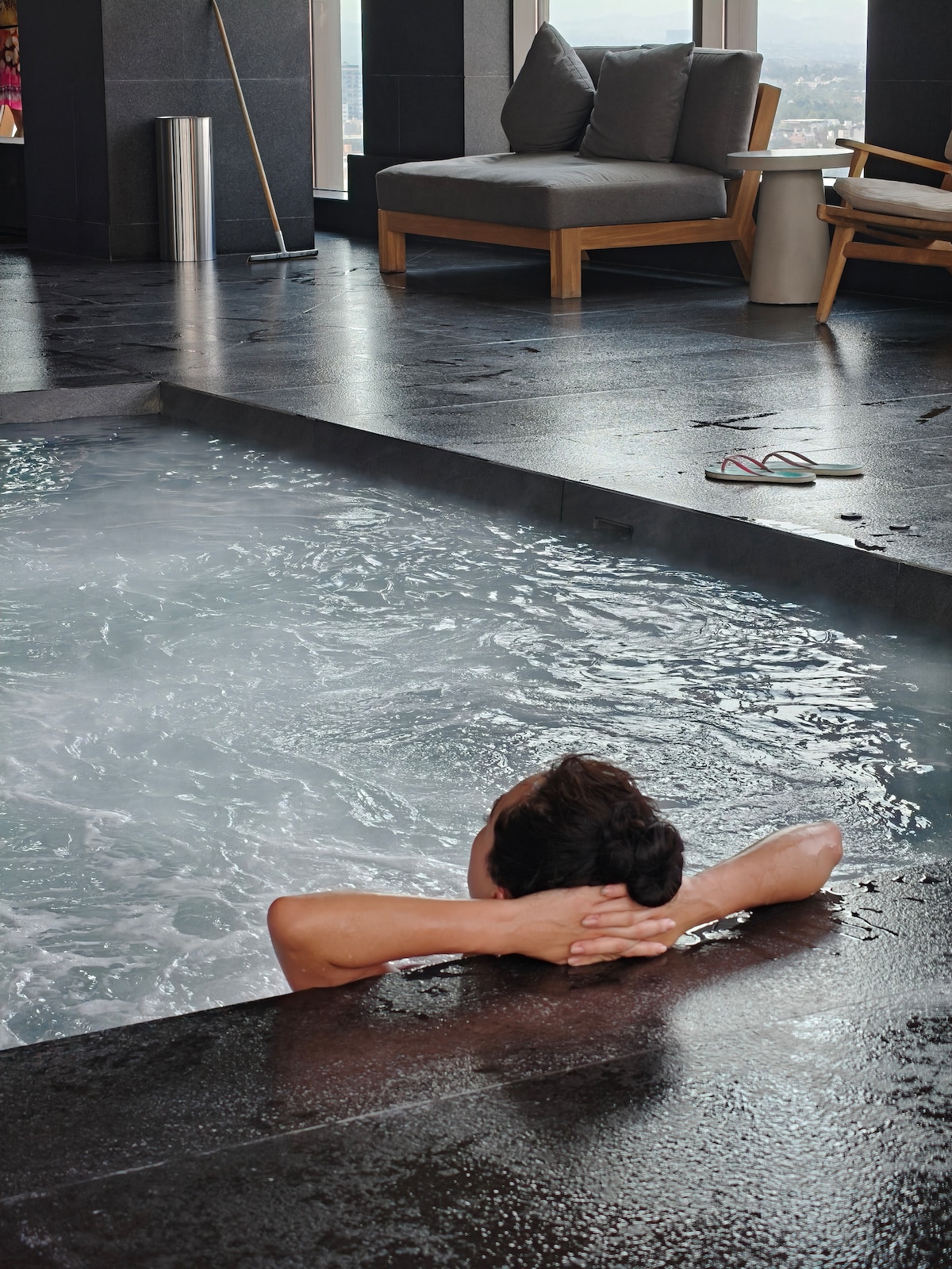 El loft con patio privado, coworking y gimnasio se encuentra en una posición estratégica de regeneración urbana, a 7 minutos a pie de la estación de metro y las áreas más interesantes de la ciudad. Cuenta con comodidades modernas como control automatizado con Alexa, una cama de memory foam y una regadera con hidromasaje. Además, ofrece estacionamiento en el sótano y vigilancia las 24 horas. Todo el loft está alimentado por energías renovables y utiliza tratamiento de agua pluvial.