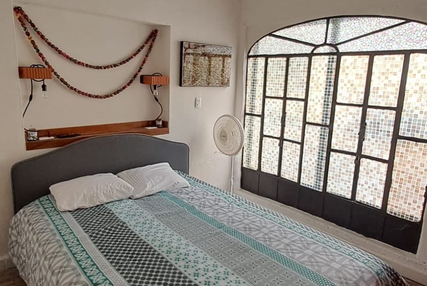 "Mexican traditions", located in a Porfirian building in Roma Norte, decorated with references to Mexican traditions. It has: spacious and equipped bathroom; washing machine strategically located; kitchen equipped with grill, microwave, and refrigerator; dining room with table and chairs for four people; living room with sofa and chairs to relax. Master bedroom with king-size bed, closet, TV and air conditioning. Access to the garden from the living room and bedroom. Ideal for extended stays.